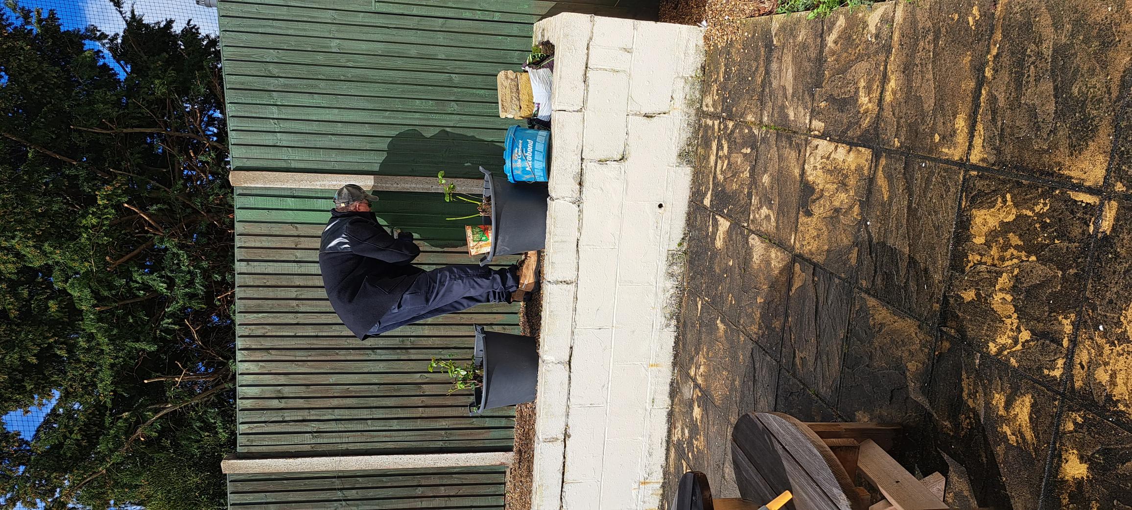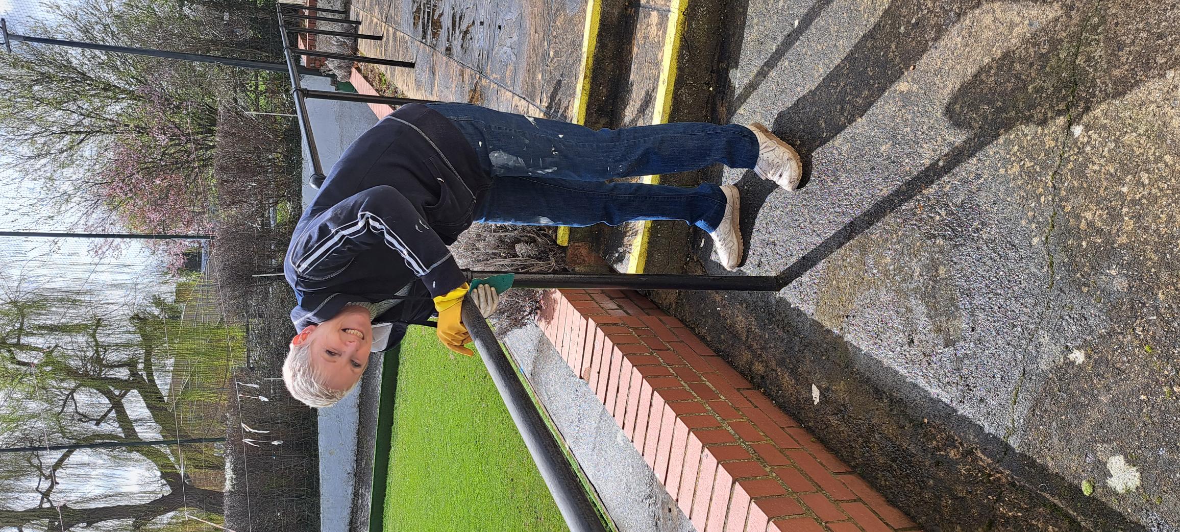 Painting the fence.